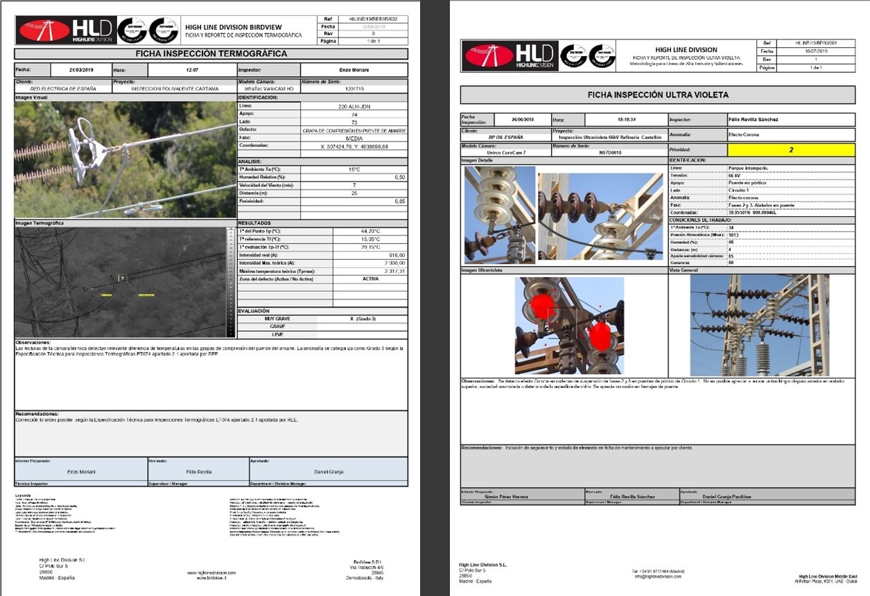 High Line Division S.L. has developed specific checklists in compliance with the legal regulations provisions, when implemented in our operations, allow us to have solid consistency in the generation of records by allowing our technicians to follow a constant routine during the inspections of high voltage installations, These determine the levels of deviation from a standard established in an Inspection Manual, either provided by the client, or developed by our technical department.